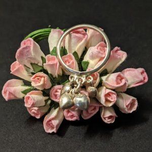 Beautiful sweet sterling silver sleek puffy dangling hearts ring size 3.5