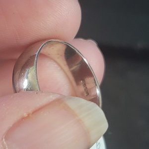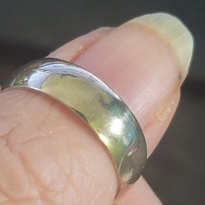 Simply elegant sterling silver band ring is solid .925 sterling silver made in Thailand by the Peter Stone company. It is a US size 8 and would make a lovely wedding band - you could have it engraved or leave plain. Band is about 1/4 inch wide and beautifully made.