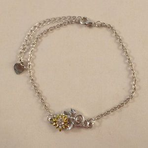 Beautifully crafted classic design European design zircon sunflower music clef note heart chain bracelet 925 sterling silver plated with sparkling round simulated diamond zircon gemstones. Top quality, high polished shine, brand new, never been worn. Lead, nickel free.This bracelet sparkles.