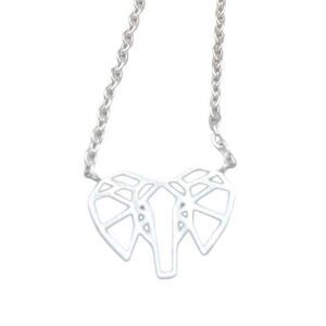 Sterling Silver Plated Origami Elephant Pendant Necklace