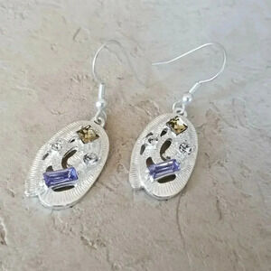 Elegant silver plated pewter oval dangles and silver plated brass earring hooks