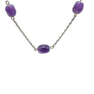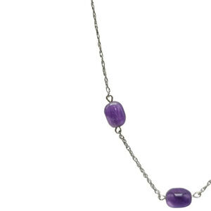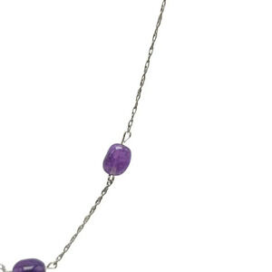 Sterling Silver Polish Purple Amethyst Stone Bead Station Chain Necklace Vintage
