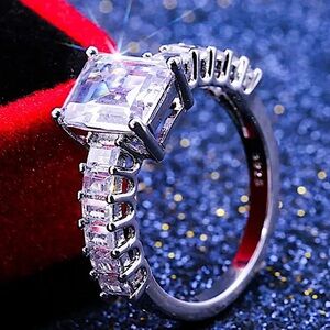 Sterling Silver Princess Cut Halo Baguette Diamond Ring