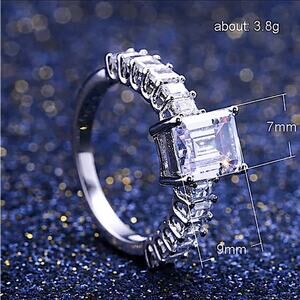 Sterling Silver Princess Cut Halo Baguette Diamond Ring