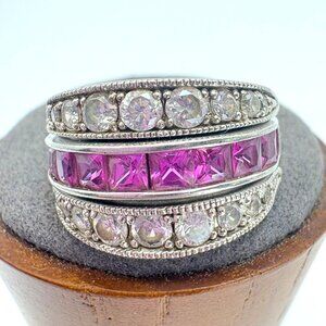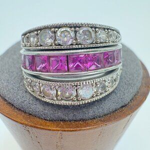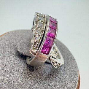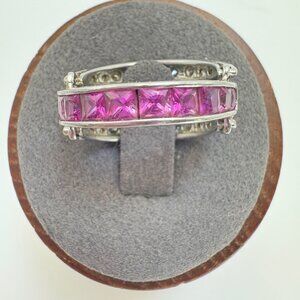 Sterling Silver Princess Cut Pink CZ Band Hinged Reversible CZ Guard Bands 5.75