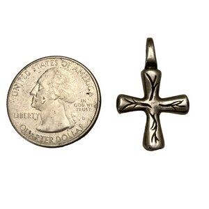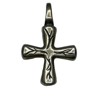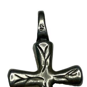 Sterling Silver Puff Cross Pendant Boho Rustic Nature 4 Grams 1" x 3/4"
