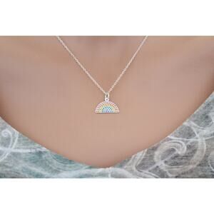 Sterling Silver Rainbow Charm with Nano Gem Crystals Necklace