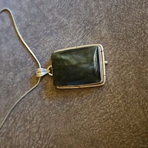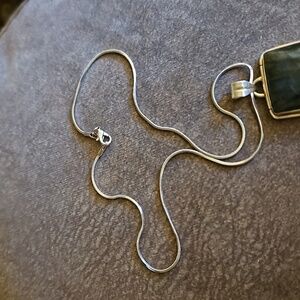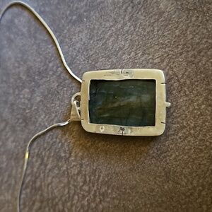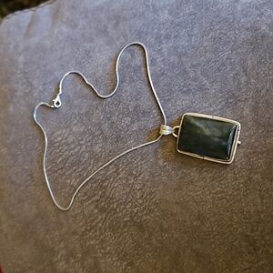 Sterling Silver Rectangle Labrodite Pendant Chain Necklace