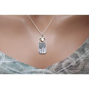 Sterling Silver Rectangle Pine Tree with Bronze Sun Necklace