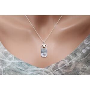 This is Sterling Silver Rectangle Pine Tree with Bronze Sun Charm Necklace. The charm can also be purchased as a necklace or bracelet.