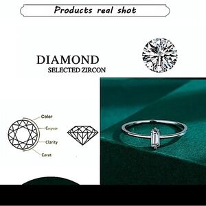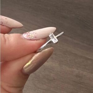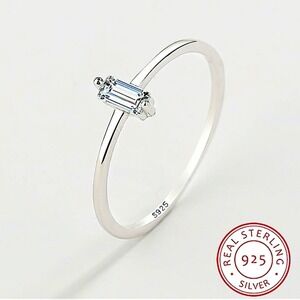 Sterling Silver Rectangular Cubic Zircon Ring Minimalist, Dainty Diamond Size 7