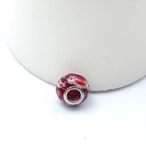 Sterling Silver Red Floral Murano Glass Bracelet Charm Bead