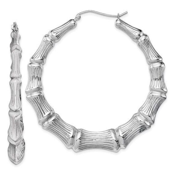 Sterling Silver Rhodium-plated Bamboo Round Hoop Earrings
