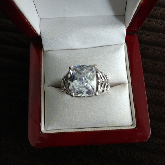 Gorgeous fancy cut sterling silver cz ring... Elegant side design... Stamped 925...