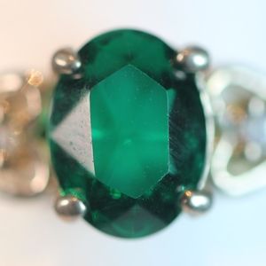 Sterling Silver Ring 925 Green Oval Stone Diamond