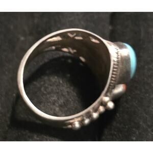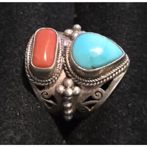 Sterling Silver Ring Fine Jewelry Size 7.5 Band Turquoise & Coral Stones