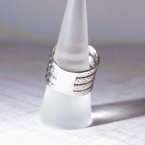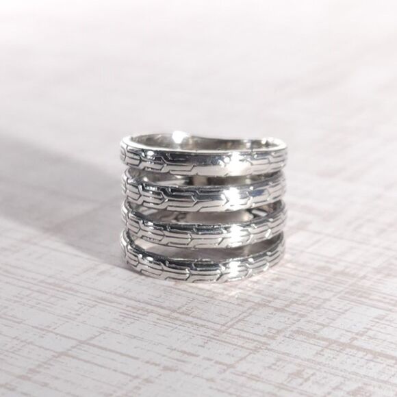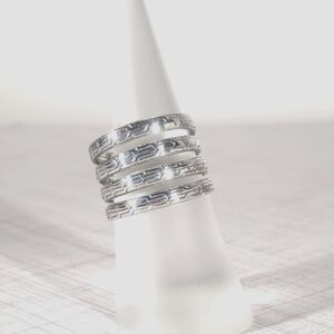 A uniquely designed ring of 4 separate bands secured in back with solid sterling silver. See pics.