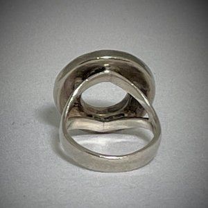 Stylish Sterling Silver Ring Circle Shape with Oxidized Center and Silver Pebbles in Paisley Swirl Pattern