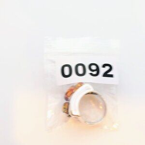 Sterling Silver Ring With Amber Gemstones & Unique Filigree Design