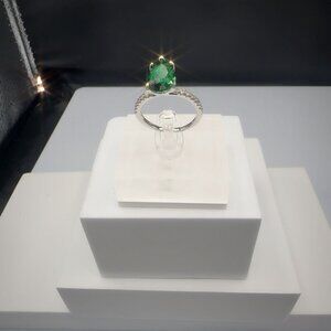 Sterling Silver Ring With Pear-Cut Green Gemstone & Pave Accent Stones Size 7