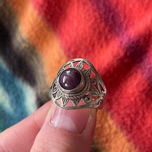 (send me a message about which you’re interested in!!) i’ve worn less and less silver over the years and figured it’s time i rehome my former favorites. each ring pictured is for sale, with stones such as chalcedony, rose quartz, fused glass, moonstone, and natural ruby! all marked 925, no known flaws or stone damage other than minor scratches/tarnishing on the silver which can easily be buffed or polished out. only piece that is flawed is the large moonstone ring - the shank was broken to fit smaller on my finger, but this can be fixed easy peasy by a jeweler!
