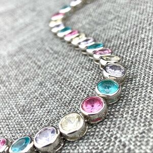 Sterling Silver Rock Candy Crystal Tennis Bracelet Pastel Colorful Bright