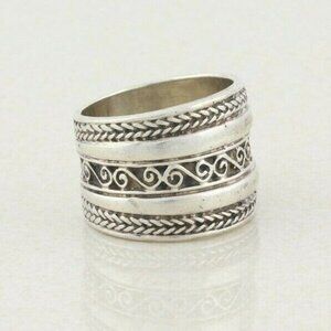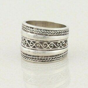 Sterling Silver Rope Border Dome Thick Band Ring Size 5 3/4