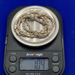 This sterling silver rope chain, marked "925 Italy," is a timeless and versatile accessory for any outfit. Crafted from genuine sterling silver, it offers a classic look with durability and a modern touch. Perfect for both formal and casual occasions, this chain is a must-have for any jewelry collection.