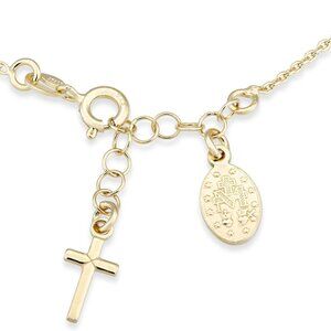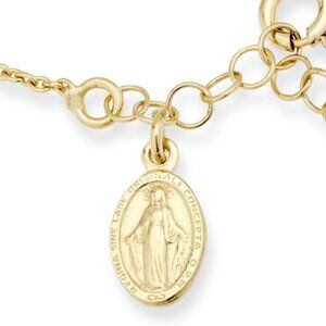 Features: Dainty sterling silver bracelet featuring the Miraculous Medal and a polished cross charm. Gold plated with a durable 1-micron layer, hypoallergenic, and nickel-free. Adjustable length with a secure spring ring clasp, perfect for daily wear or layering.
