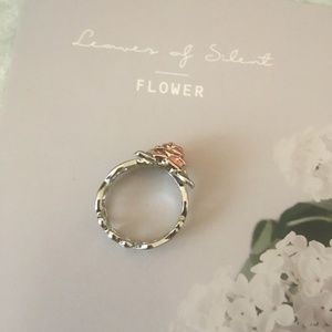 New with tags Rose Gold Flower Silver Scroll Band Leaflet Ring.