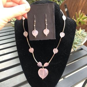 See pictures for Rose quartz benefits and properties. Earring drop at 1.75” and necklace length is 16” princess length, resting on the chest