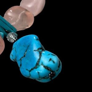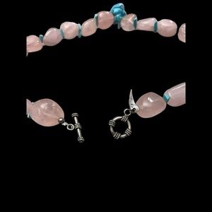 Sterling Silver Rose Quartz and Arizona Turquoise on a 8.5" ( 22cm) strand. This beautiful necklace is a statement piece. One of a kind. Great for the Spring and Summer outfits. Would make a beautiful gift for someone special 💕 Price is Firm