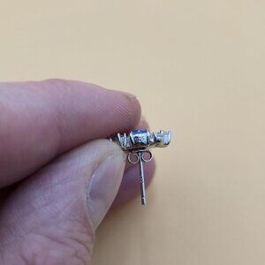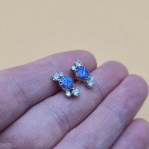 Sterling Silver Round Blue Opal And CZ Stud Earrings A5385