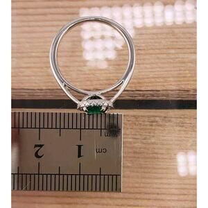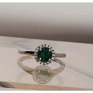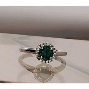 Sterling Silver Round Created Emerald, Round Created White Sapphire Halo Ring 8