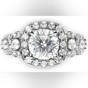 Sterling Silver Round Cubic Zirconia Halo Engagement Ring (5)