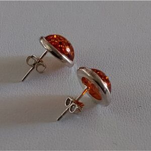 Sterling Silver Round Cut Genuine Amber Gemstone Stud Earrings