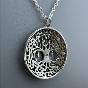 This Sterling Silver Round Tree of Life Pendant Necklace gives Celtic vibes.