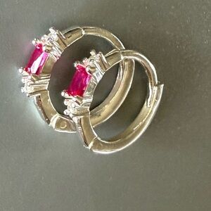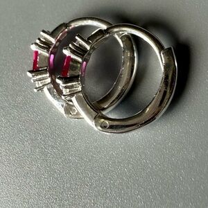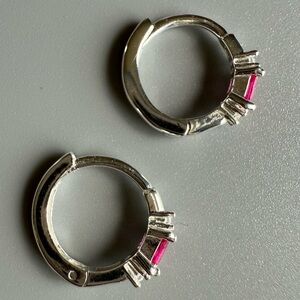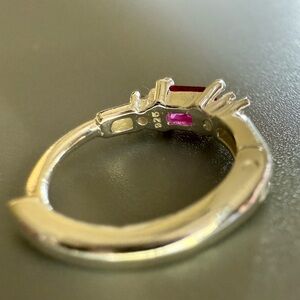 Sterling Silver Ruby Baguette Huggie Hoop Earrings 11mm