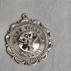 Sterling Silver Ruby Las Vegas Hand Cards Circle Charm Pendant Vintage