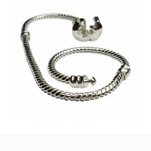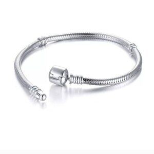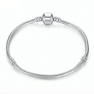 Sterling Silver S925 Snap Clasp Snake Chain European Charm Bracelet about 8"