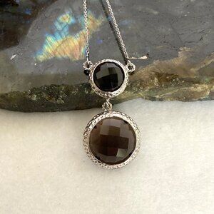 Sterling Silver SGL 925 India Faceted Round Smoky Quartz Pendant Necklace 18"
