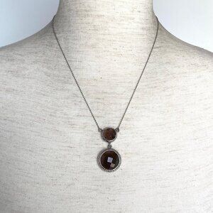 Sterling Silver SGL 925 India Faceted Round Smoky Quartz Hammered Pendant Necklace