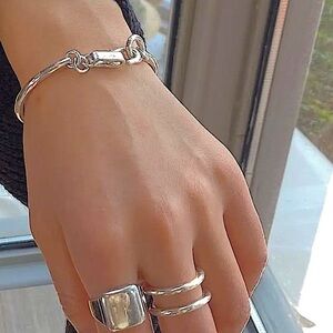Sterling Silver Safety Pin Clip Bangle Bracelet