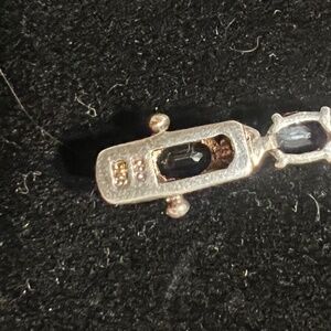 This exquisite sterling silver tennis bracelet features genuine sapphires set in an elegant design, accented with delicate floral motifs. The bracelet is stamped with 925, indicating its high-quality sterling silver composition. Perfect for special occasions or adding a touch of sophistication to your everyday wear, this bracelet is a timeless addition to any jewelry collection. The secure clasp ensures it stays in place while providing comfort and style.