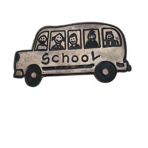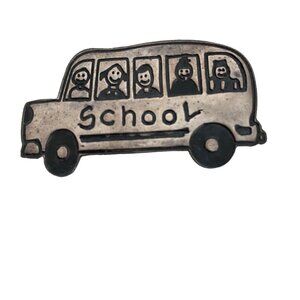 Sterling Silver School Bus Brooch Pin Vintage Save The Children Jewelry Mexico