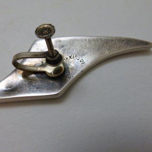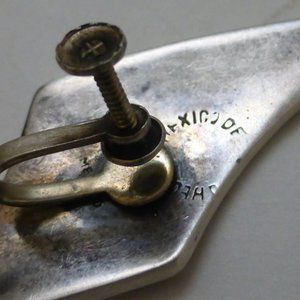 A unique pair of vintage hollow formed art deco statement earrings. With the screw hardware at the bottom, these lightweight earrings will sit mostly above the earlobe. Stamped what appears to read "Hecho en Mexico DF" and "Sterling".