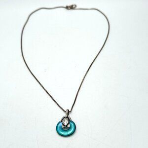 Sterling Silver Sea Turtle Necklace Blue Glass Pendant Vintage Italy 925