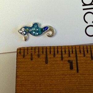 Sterling Silver Seahorse Stud Earrings Austrian Crystals Blue Glass Mosaico