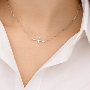 Sterling Silver Sideways Cross Necklace – Dainty Silver Faith Necklace