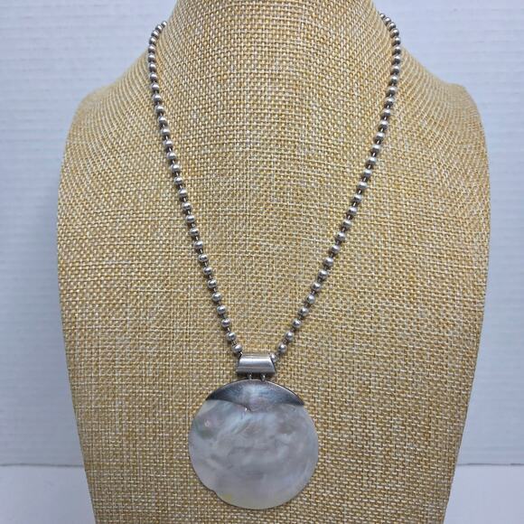 Sterling Silver Signed AZ Mother of Pearl Necklace 925 Italy